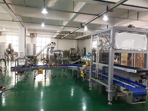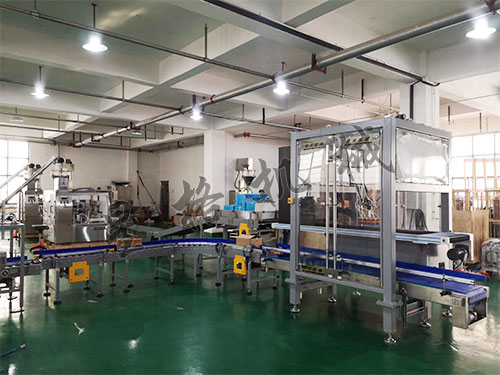 藥粉包裝機(jī)械裝箱生產(chǎn)線實(shí)拍圖